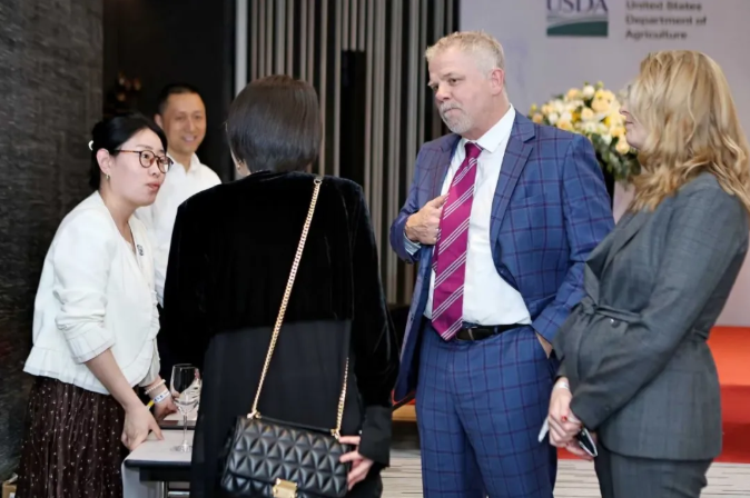 美国农业部驻华参赞(右一)、美国农业部驻沈阳领事馆人员(左一)、草莓视频黄色在线观看酒业李显堂(中间)合影留念
